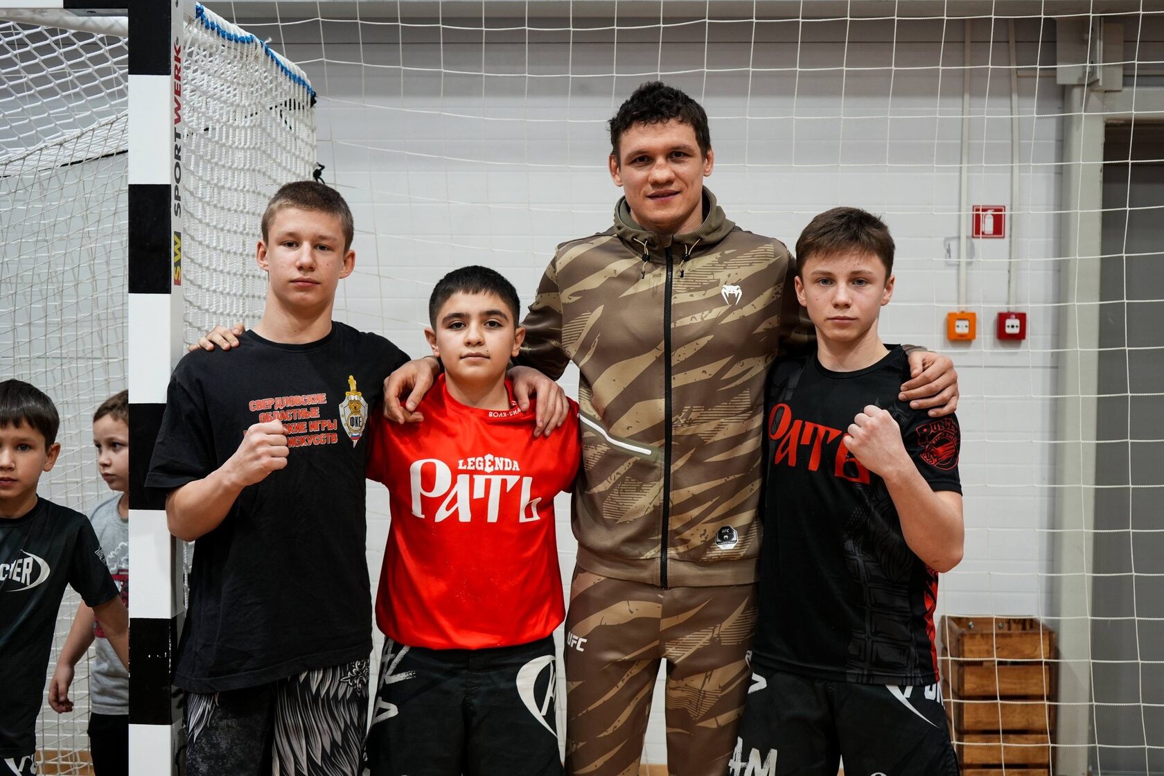Финальным аккордом встречи стал мастер‑класс для воспитанников. Роман провёл интенсивную тренировку для наших спортсменов: показал базовые и продвинутые элементы рукопашного боя и ММА, разобрал технику ведения в партере и стойке, акцентировал внимание на безопасности и правильном выполнении упражнений. Тренировка включала разминку, отработку ударов и защитных комбинаций, упражнения на координацию и выносливость. Участников на татами было много, однако совет от чемпиона получил практически каждый юный спортсмен
