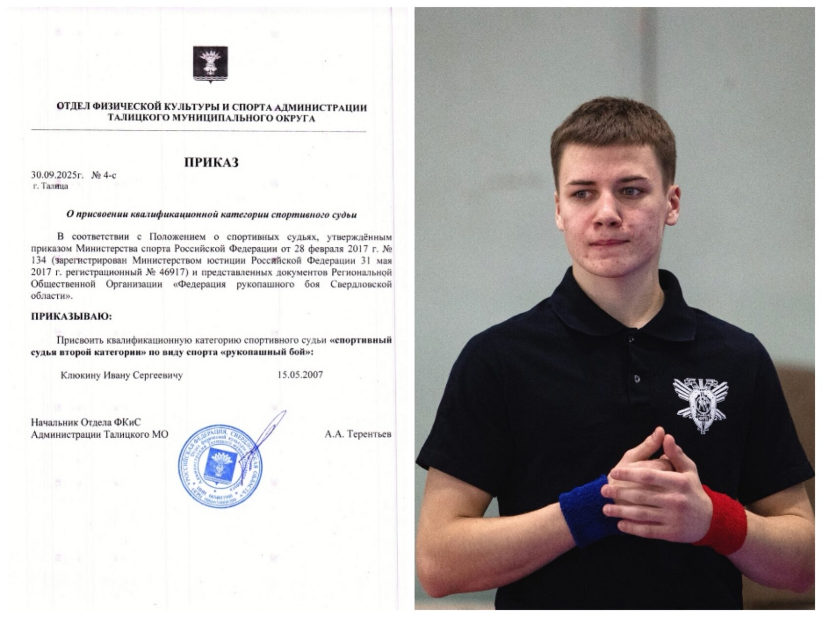 Также поздравляем Клюкина Ивана с присвоением квалификационной категории спортивного судьи второй категории по рукопашному бою. Это важный шаг в профессиональном росте и значимый вклад в развитие спортивного судейства в нашем регионе.
