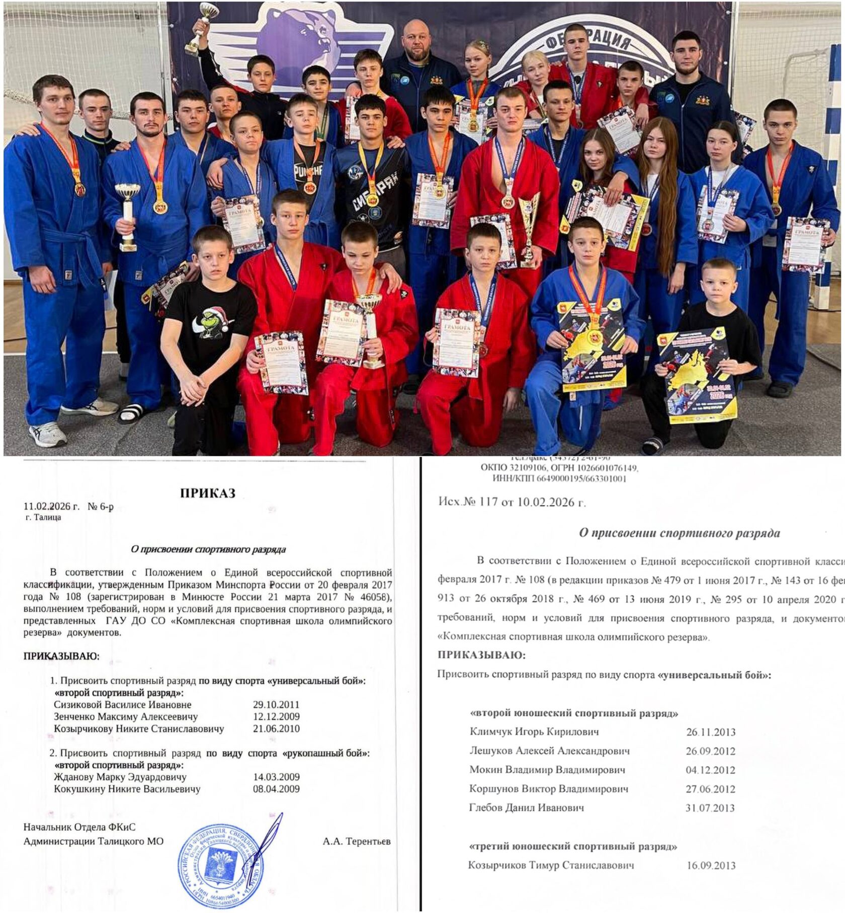 Второй юношеский спортивный разряд по универсальному бою присвоен Климчуку Игорю, Лешукову Алексею, Мокину Владимиру, Коршунову Виктору, Глебову Данилу